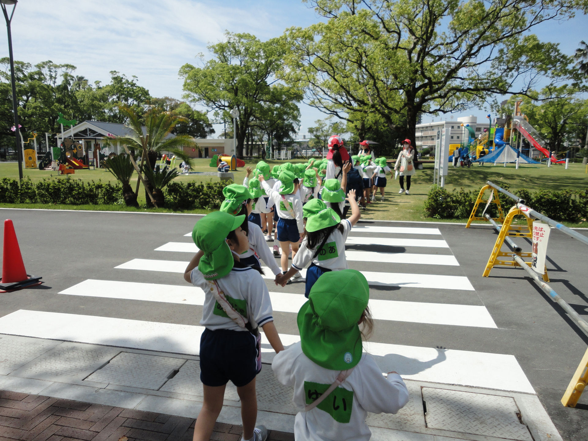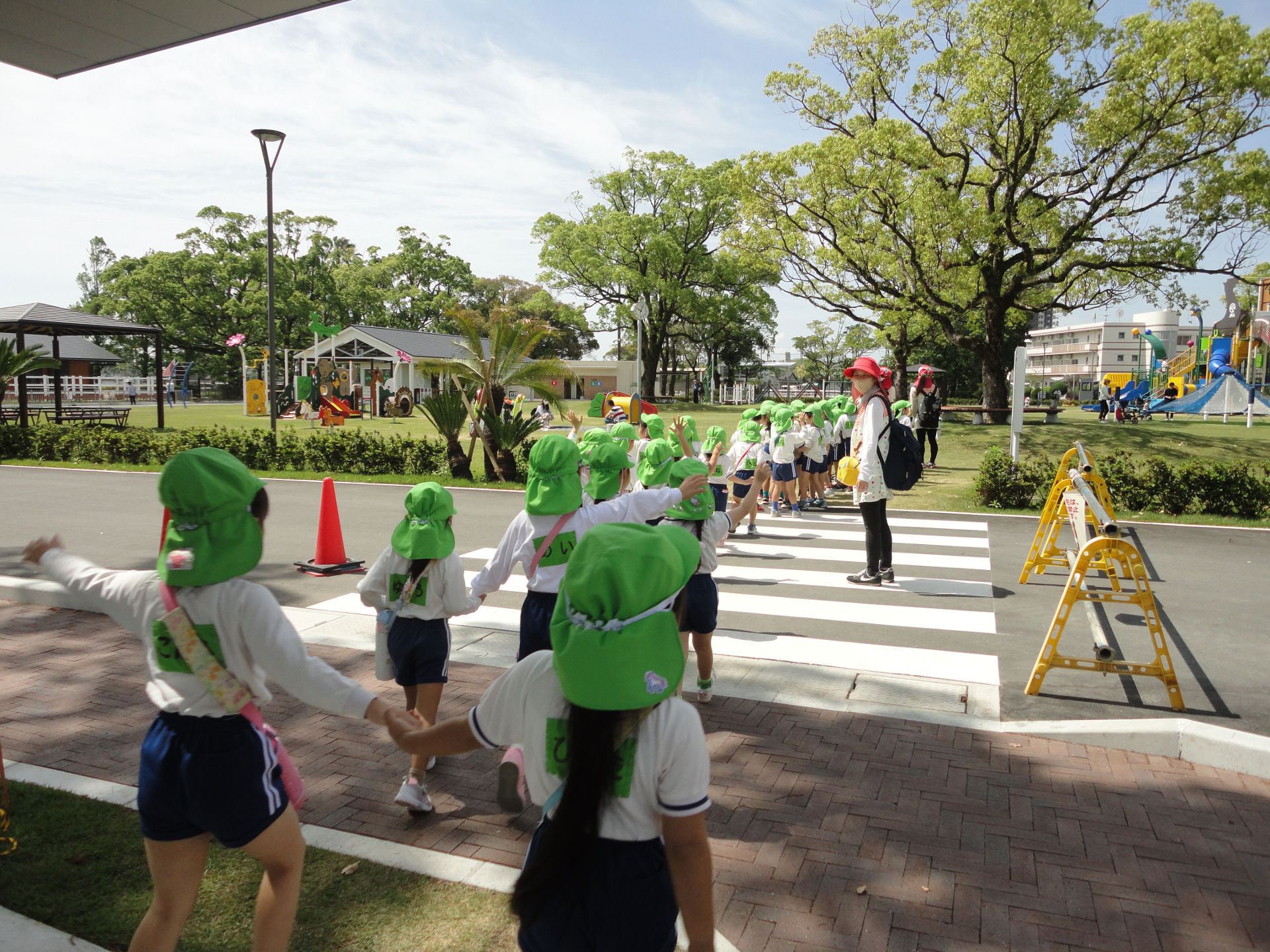 駐車場から公園広場までの横断歩道もしっかり手を挙げて渡れますね(^○^)