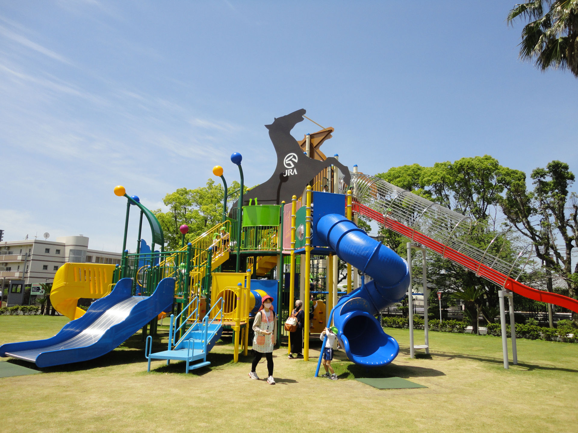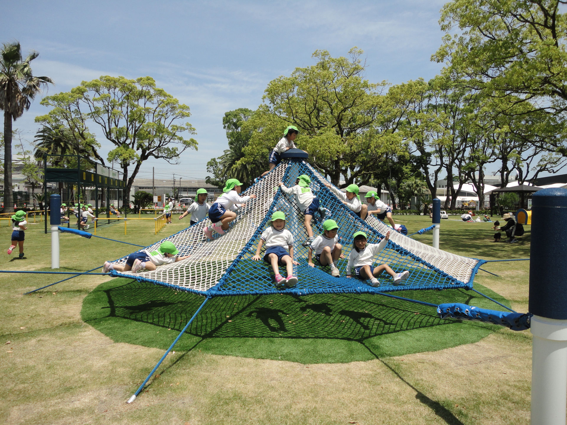 大きな遊具や網の遊具、ブランコ等、楽しい遊具がたくさんあり、こども達は大興奮♪
