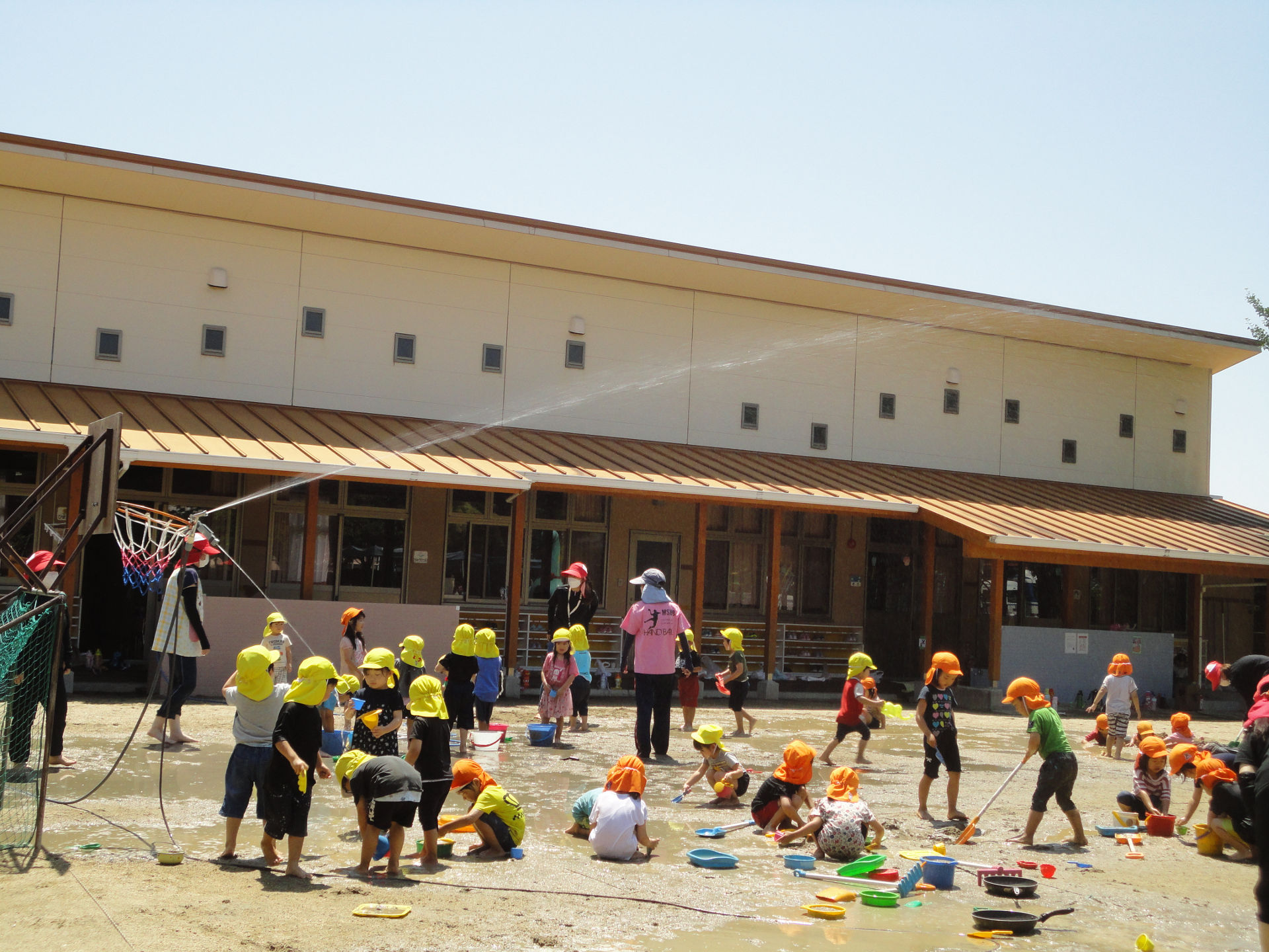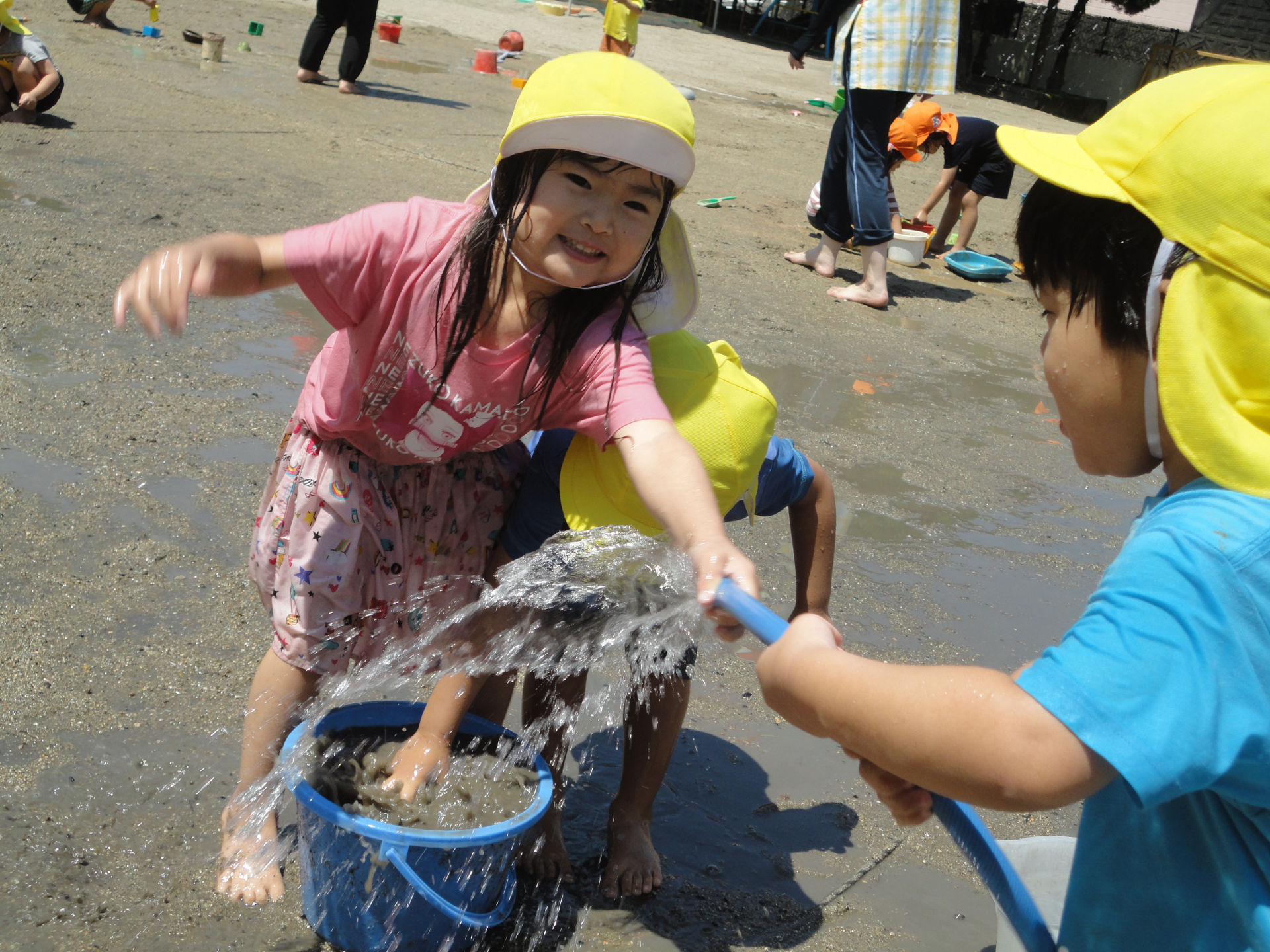 年中さんは、2回目の泥あそびを楽しみました。