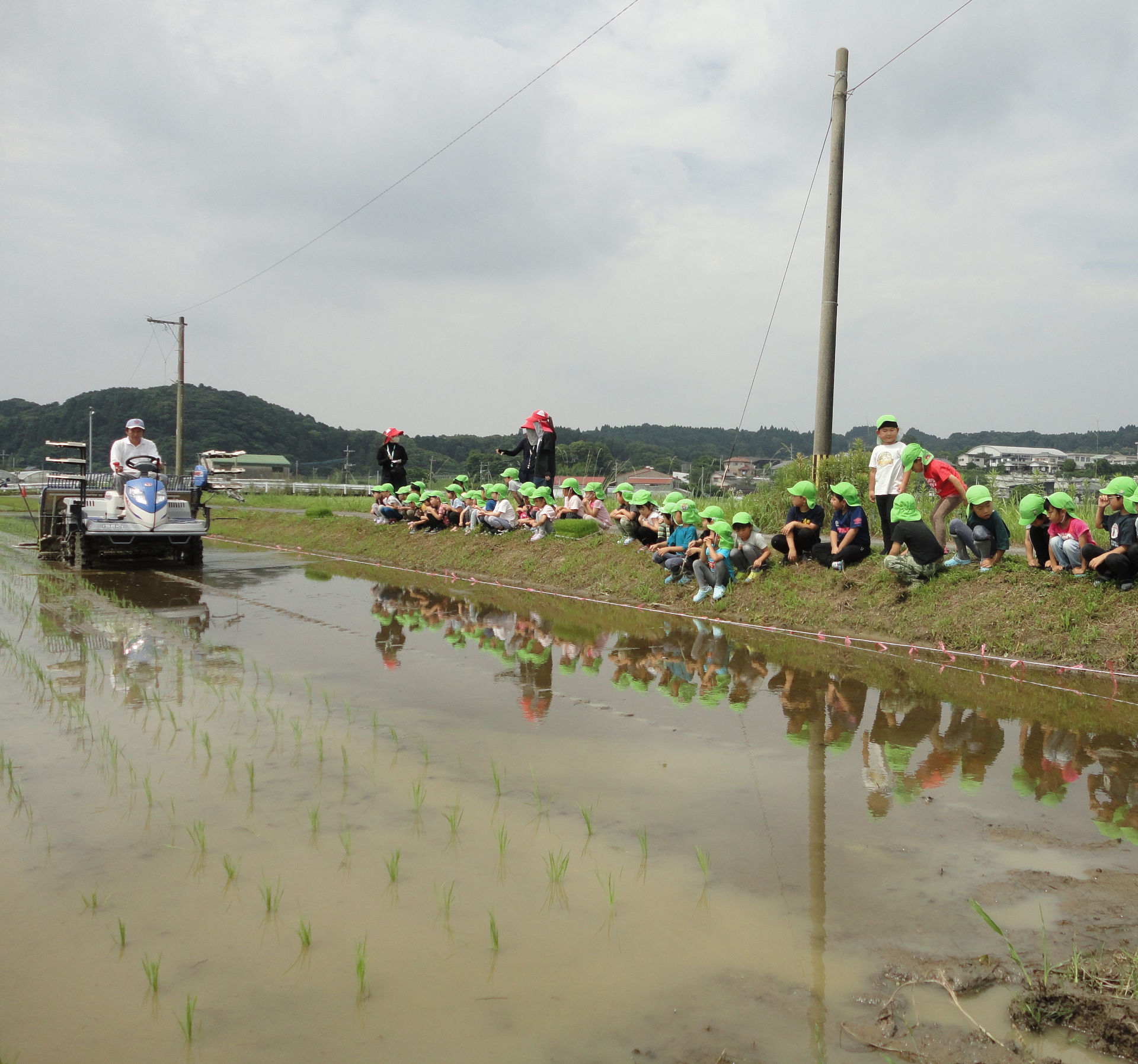 まず初めに田植え機で、苗を植えていく様子を見学させて頂きました。