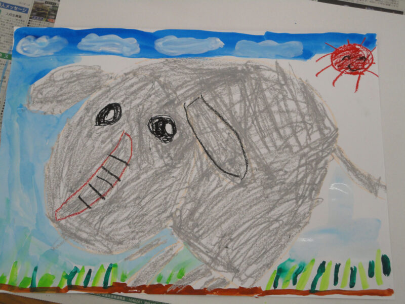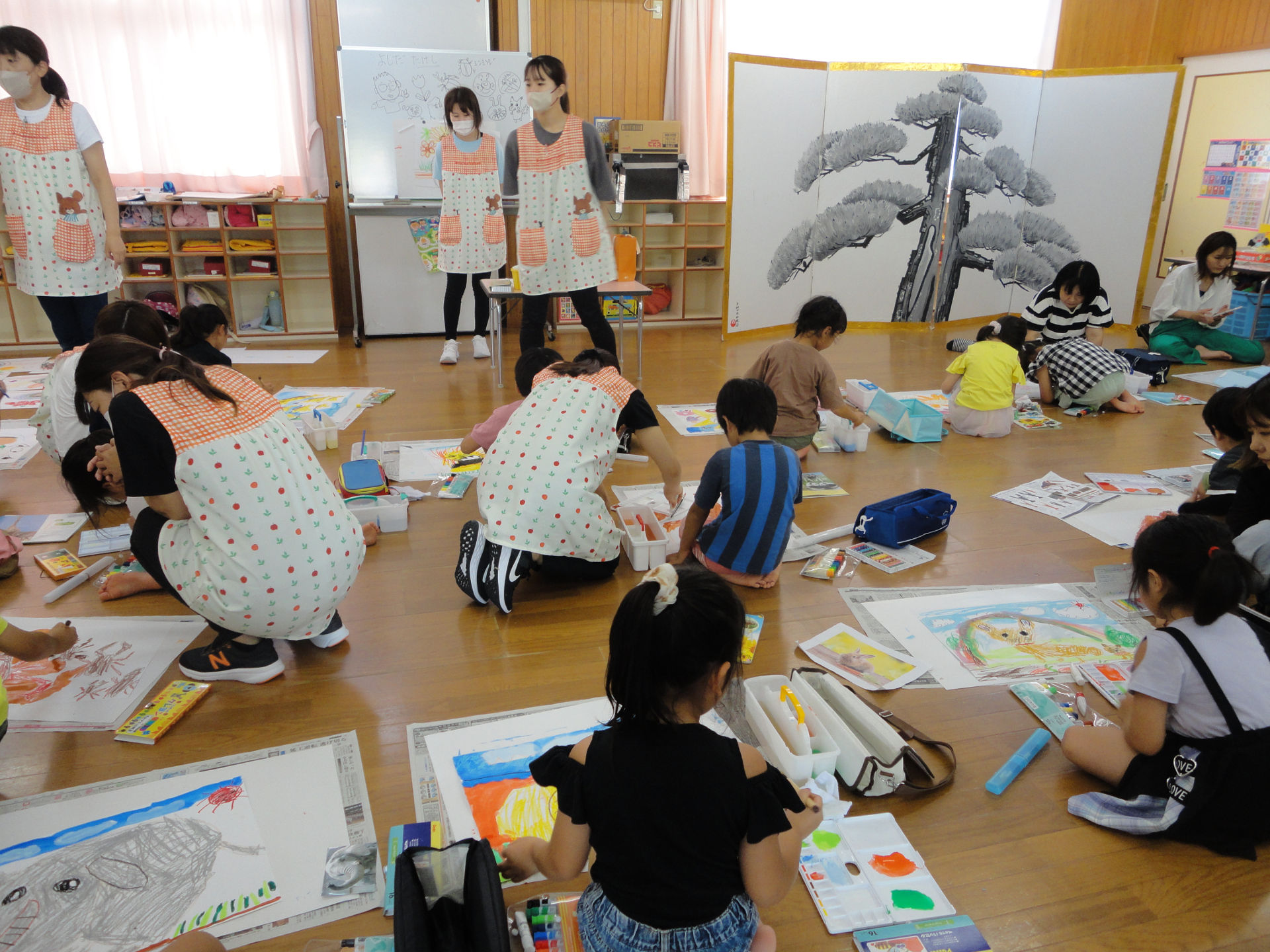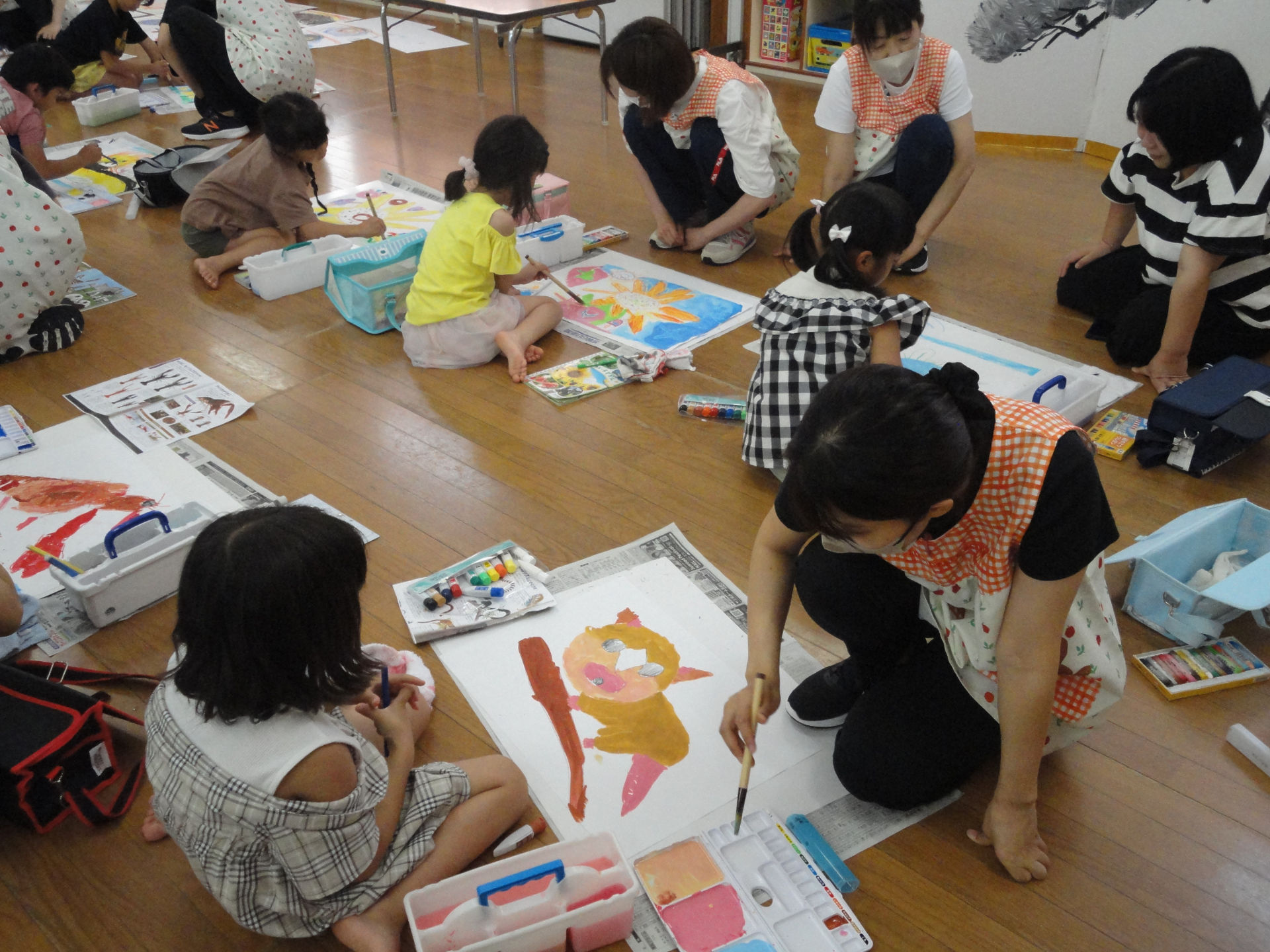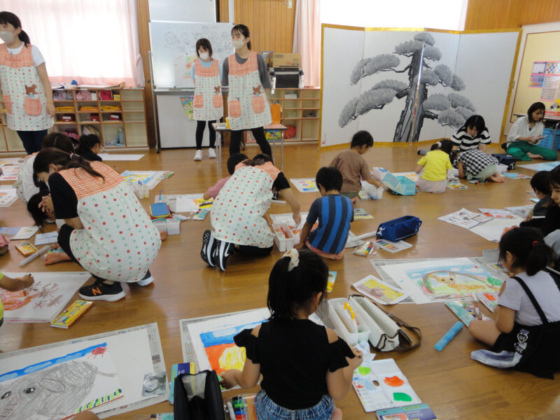 先生の指導のもと楽しそうに画用紙に向かうこども達(*^_^*)