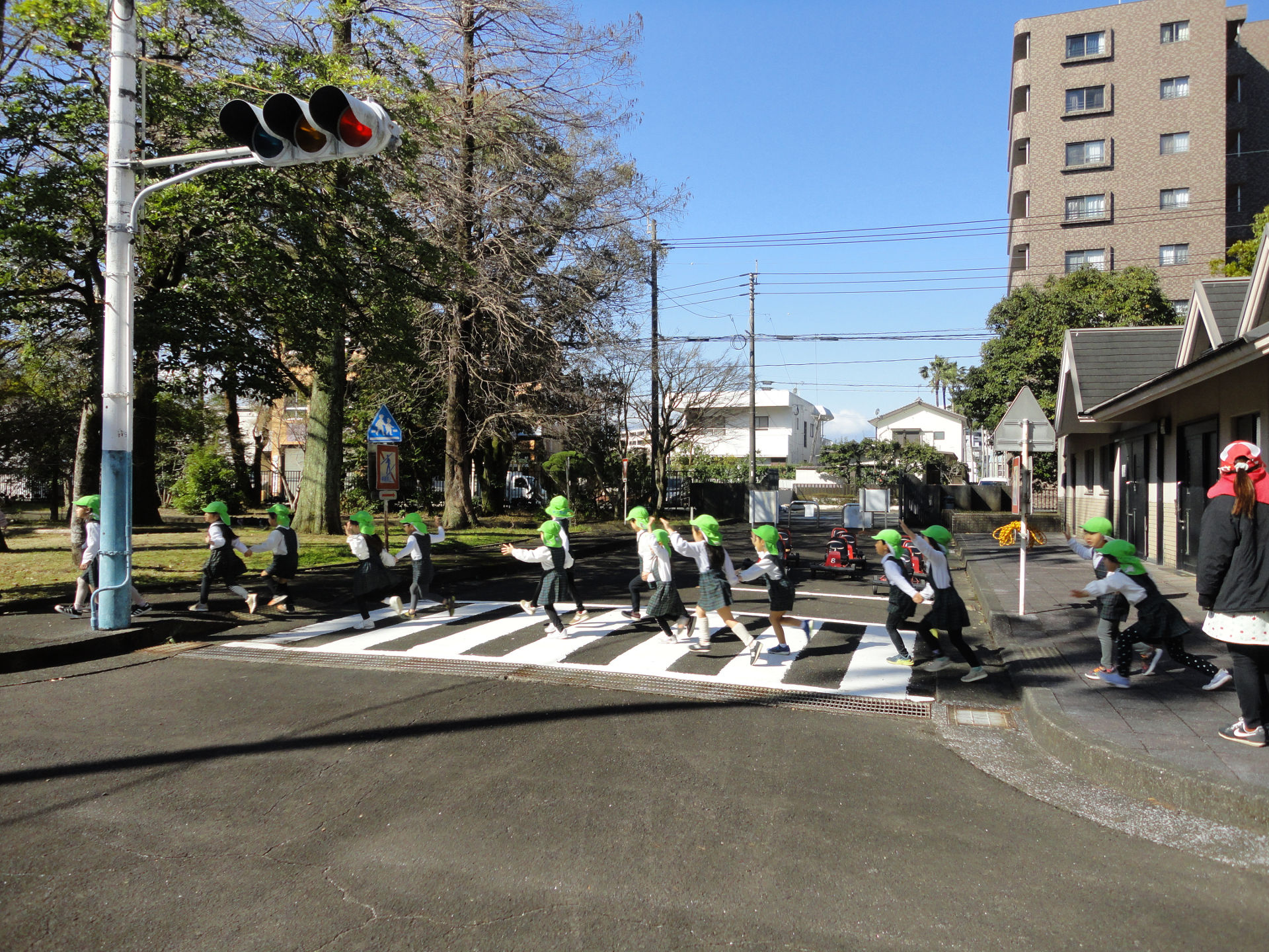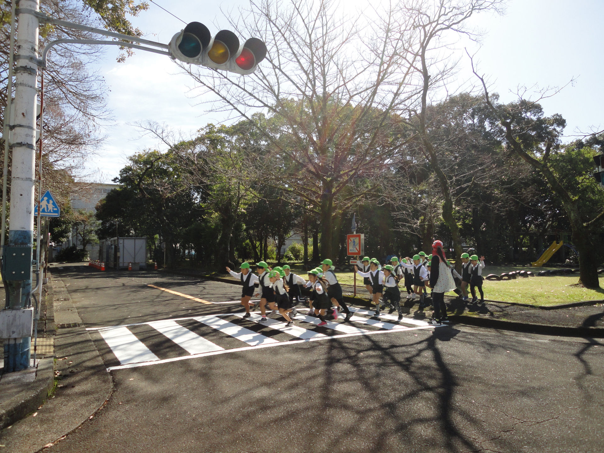 小学生に向けて、横断歩道の渡り方をしっかり練習した子ども達です♪