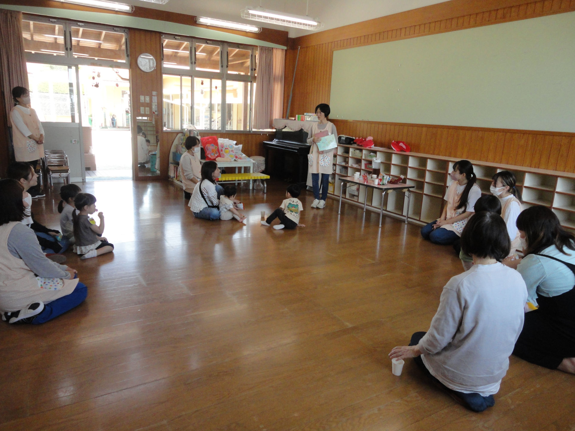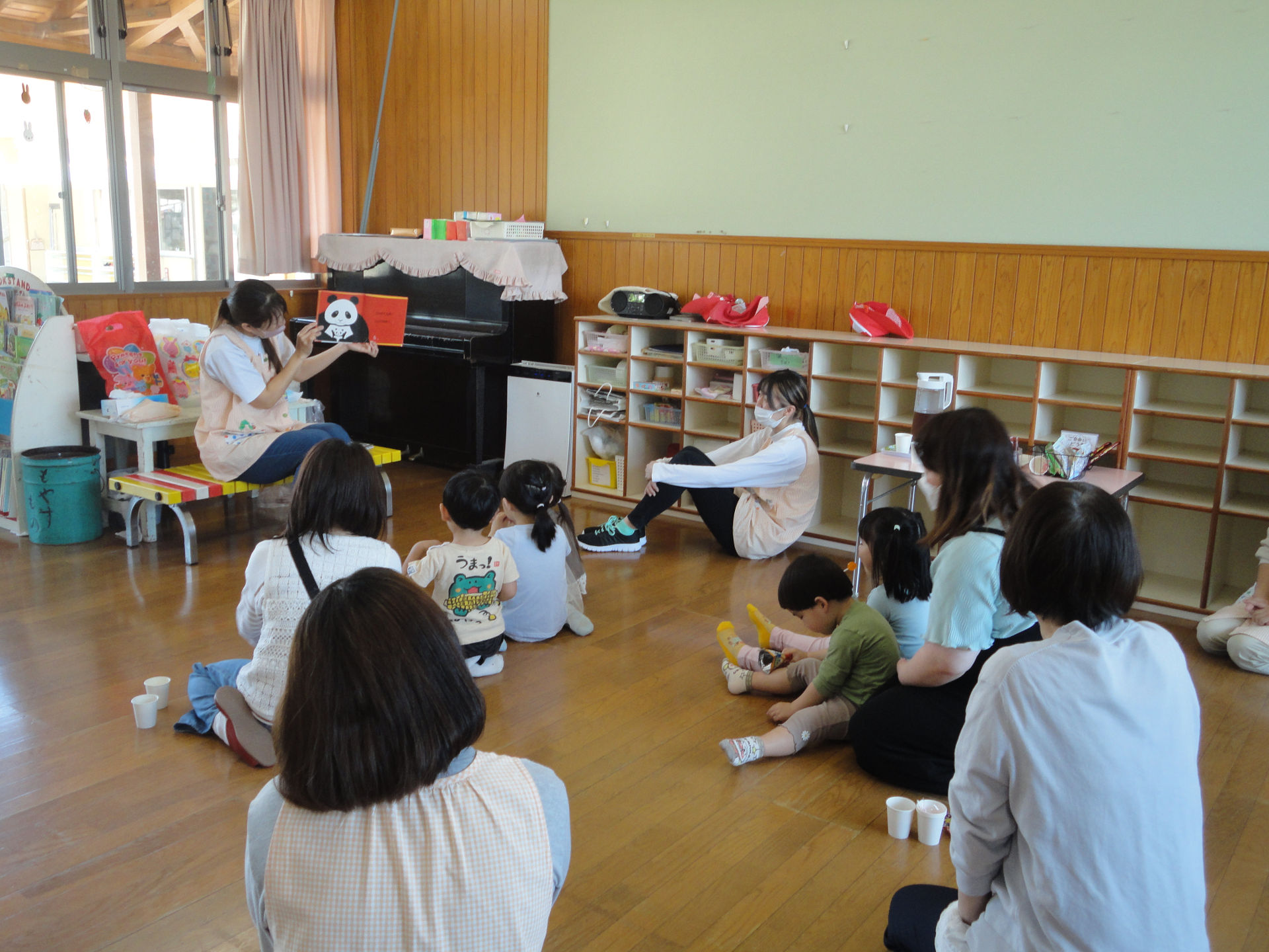 園庭でいっぱい遊んだ後は、お部屋でおやつを食べながら、先生の絵本の読み聞かせに耳を傾けていましたよ(^^♪