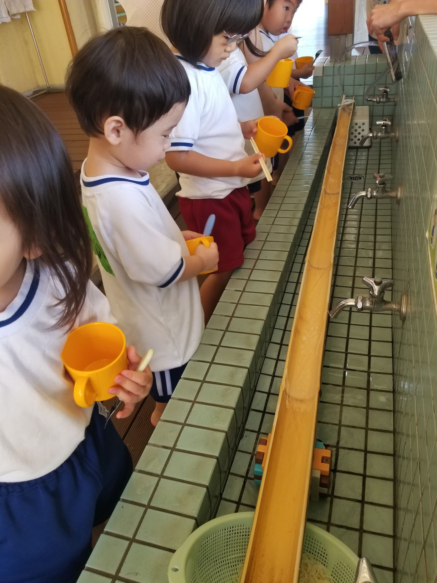 登園してきた子ども達は「早くそうめん食べたーい!」と言って、朝から待ち遠しい様子です(*^^*)