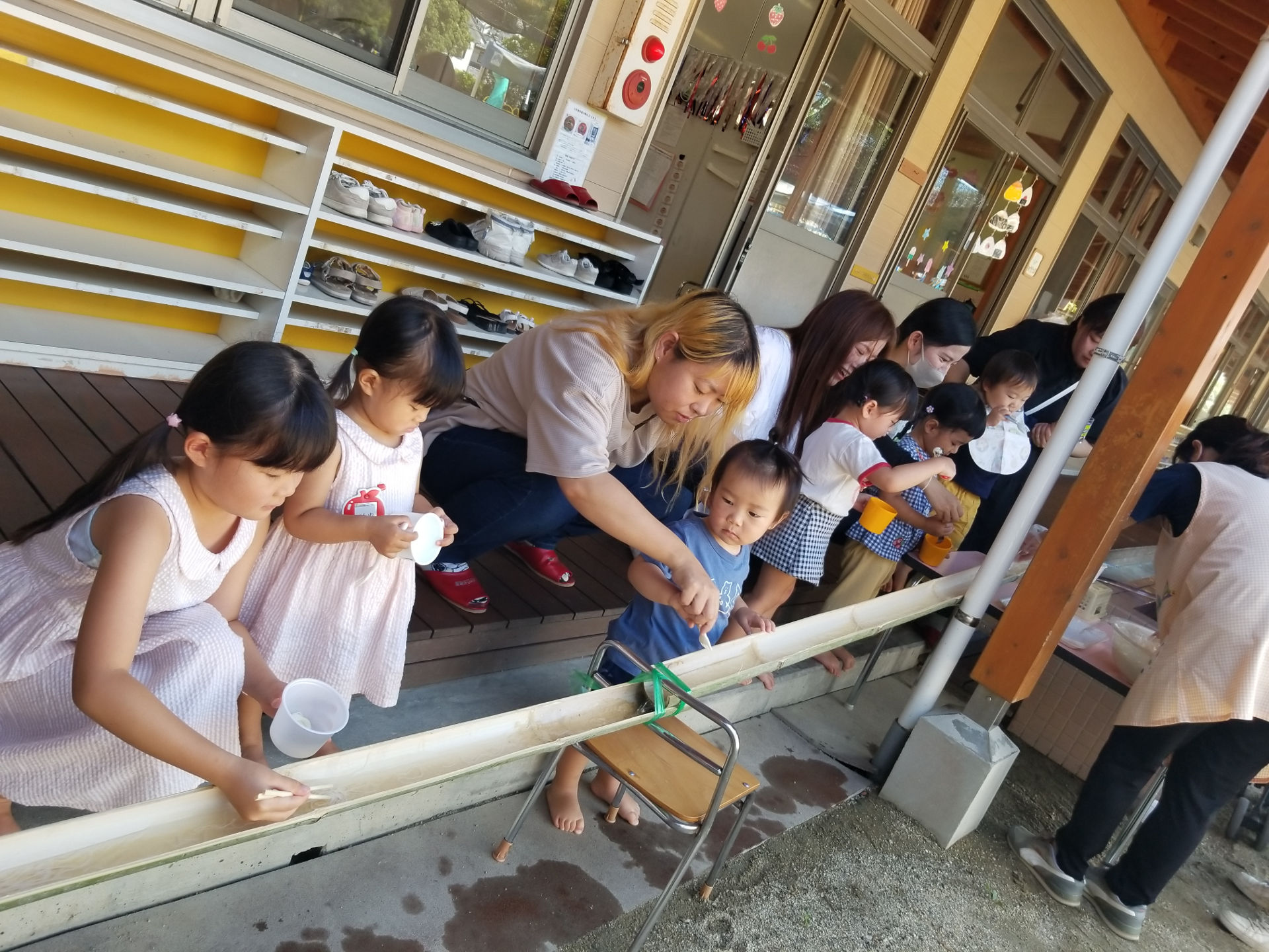 そして今日は、すくすくくらぶのお友達も一緒に流しそうめんを楽しみました。