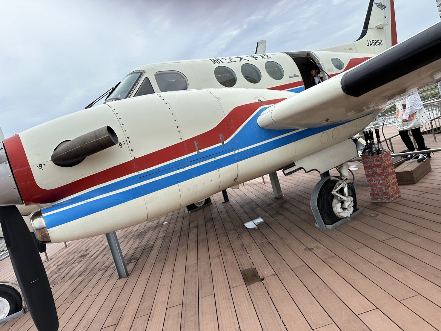 空港では展望デッキに上がって、展示してあるセスナ機に乗って、機長さんの帽子を被り、操縦席に座るという体験もできました😎