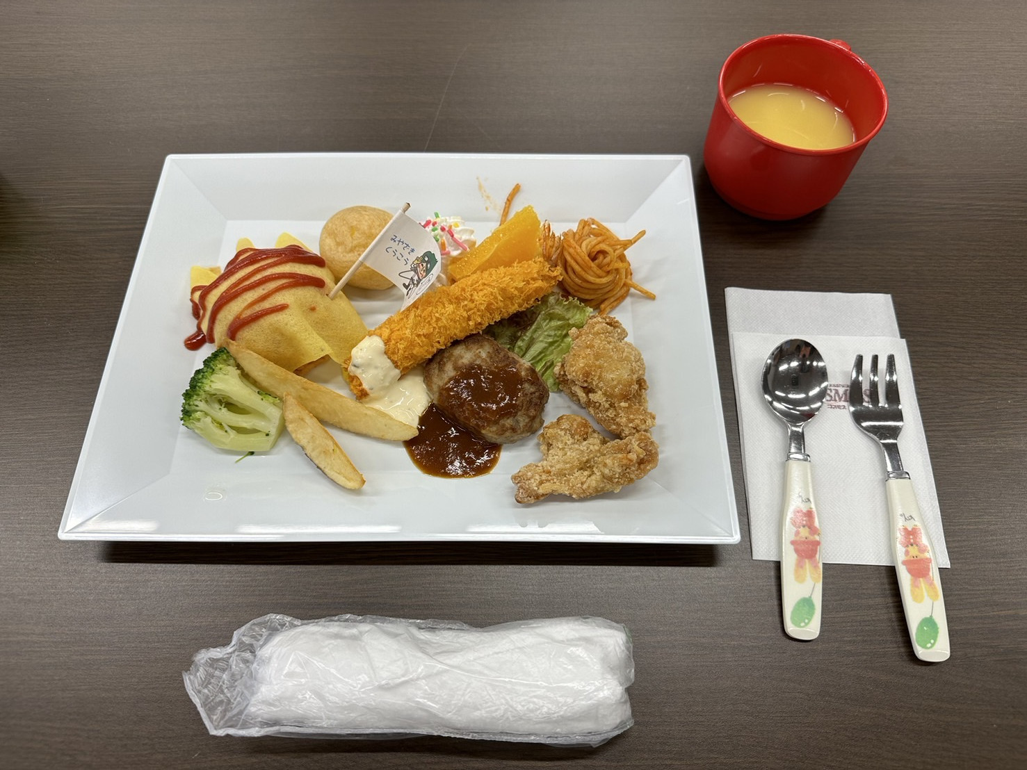オムライス🍳・エビフライ🍤・から揚げ等、大好きなおかずがたくさんあり、あっという間に食べ終わっていました😋💗