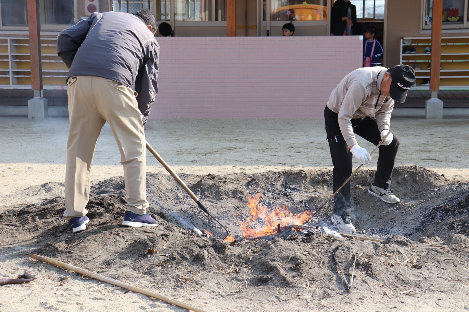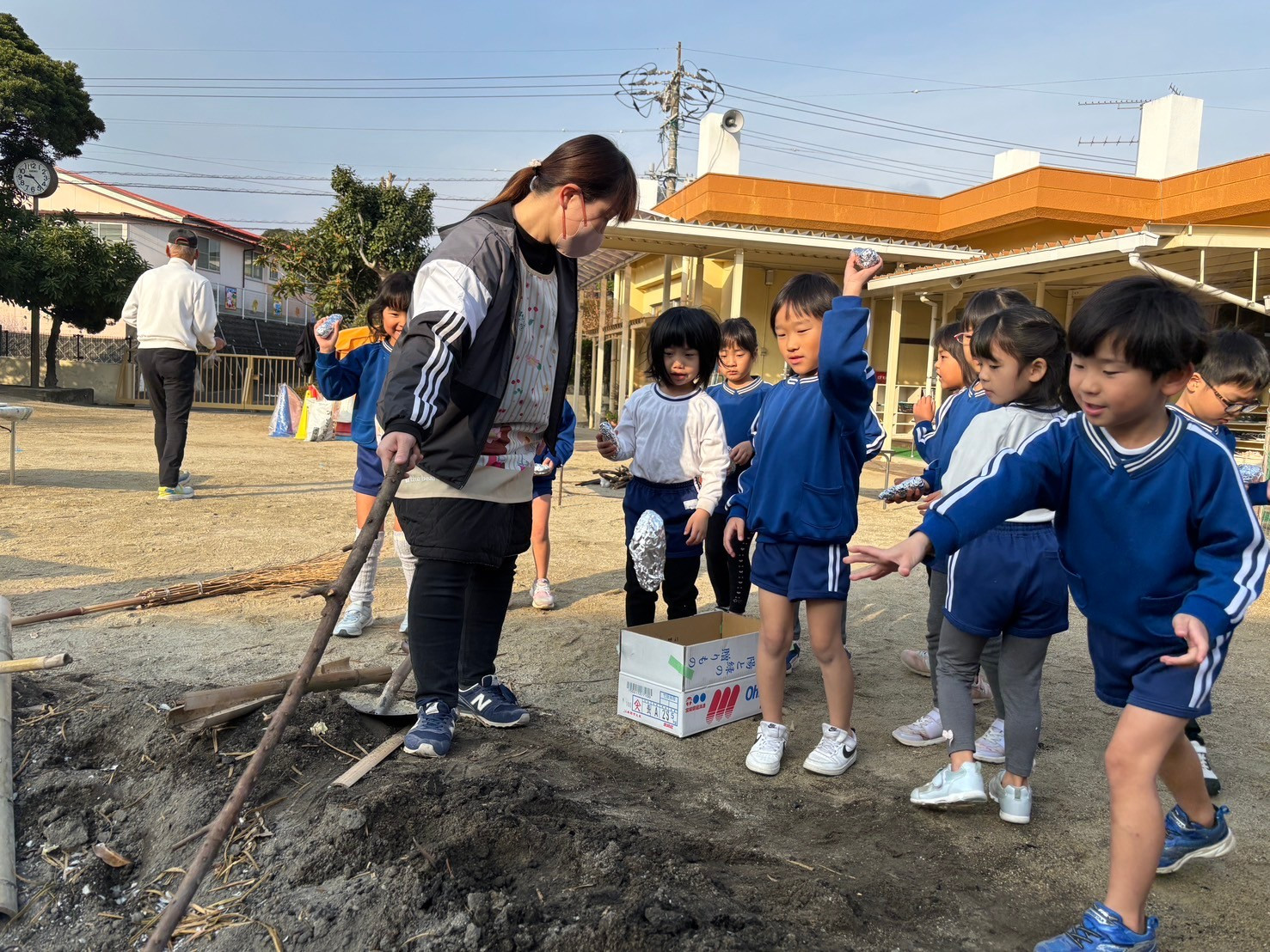 園庭に大きな穴を掘って、を燃やしてを作ってから…💦