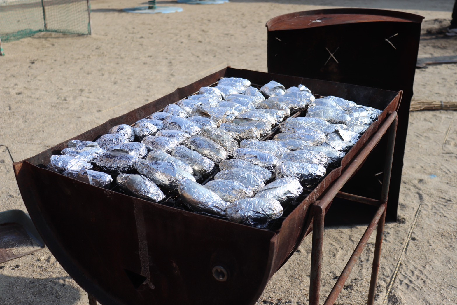 ドラム缶を利用し、焼き芋を作っています🔥