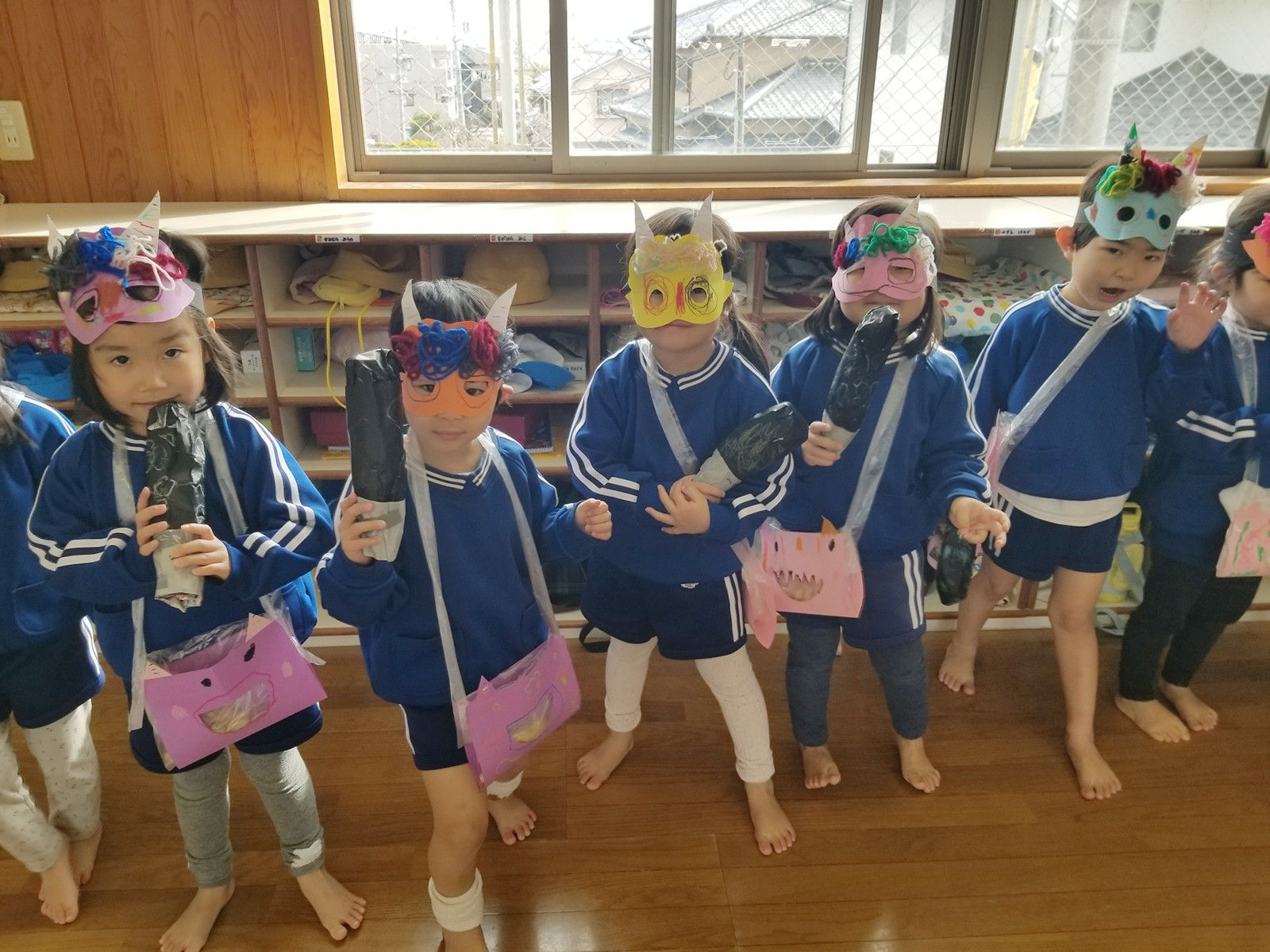 豆を装備して、お面を付け、鬼を迎え撃つ準備はバッチリ❕💪