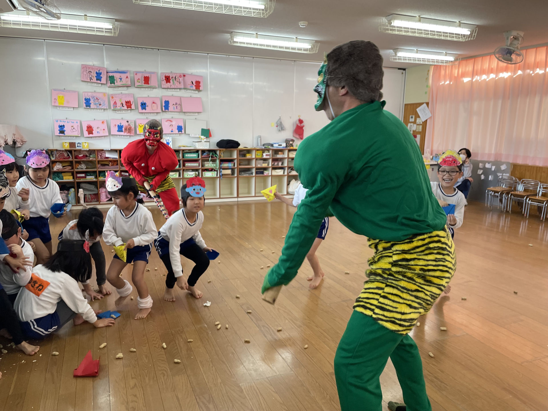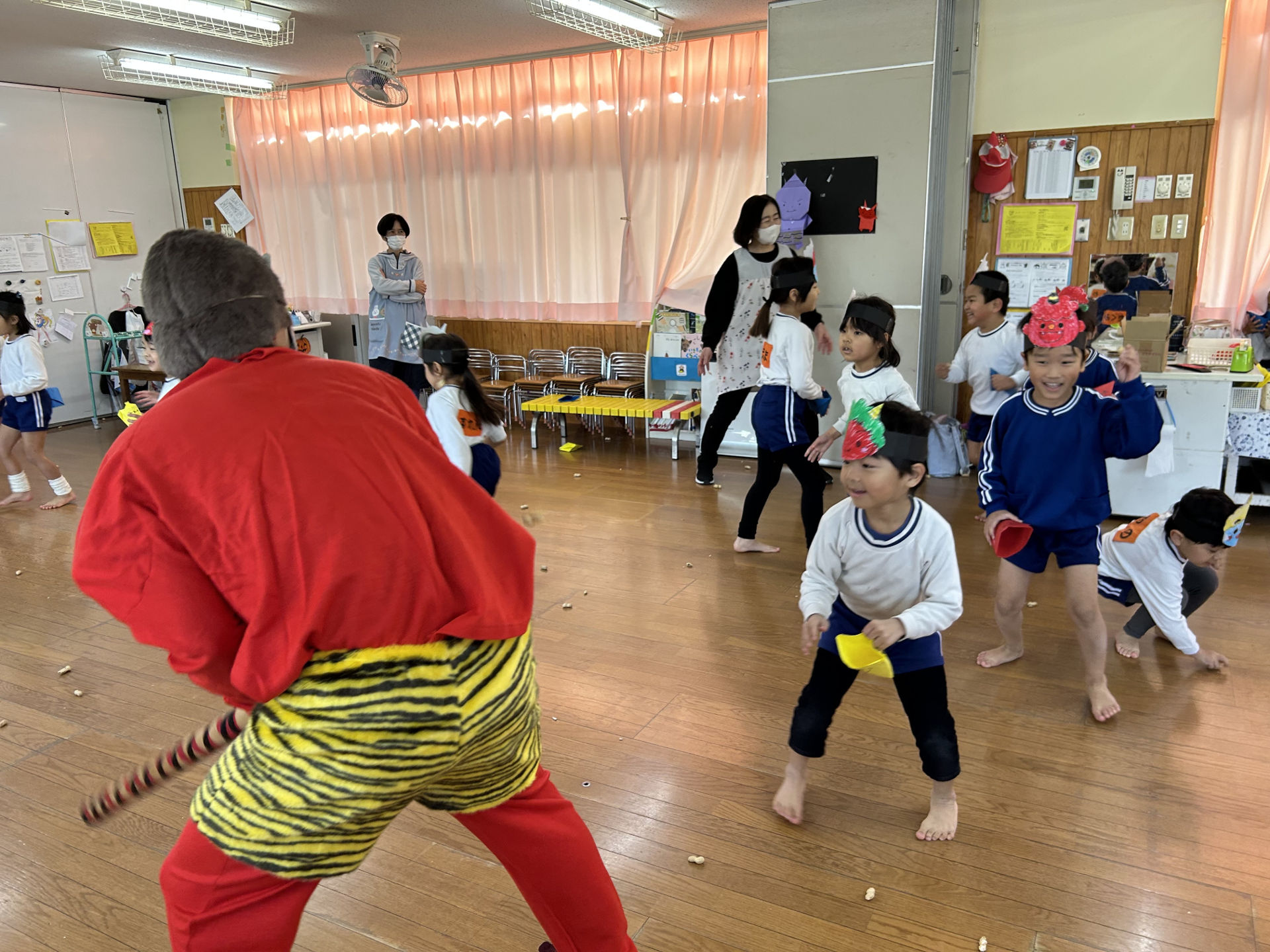 「鬼がくる…今日は鬼が来る…😱」と、子ども達は朝からソワソワ…