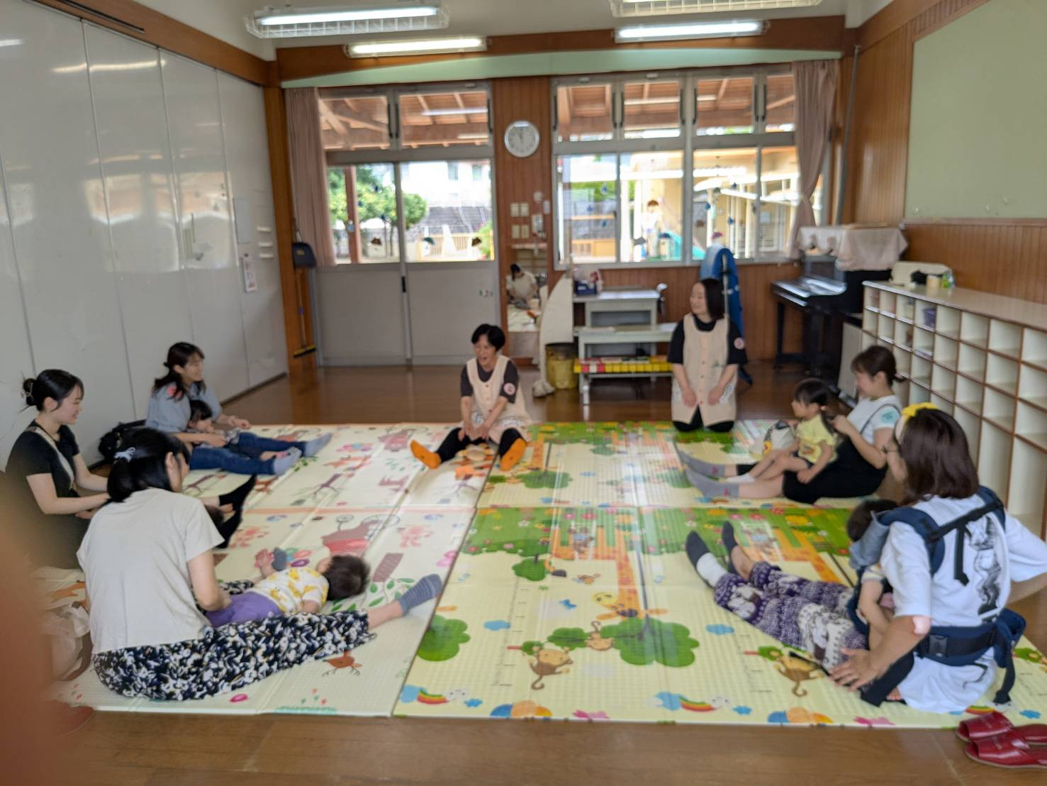 まず最初に、【ラララだいこん】で親子でスキンシップをとった後、【あくしゅでこんにちは】で自己紹介を交えながらふれあい遊びを楽しみましたよ👩👦🎵