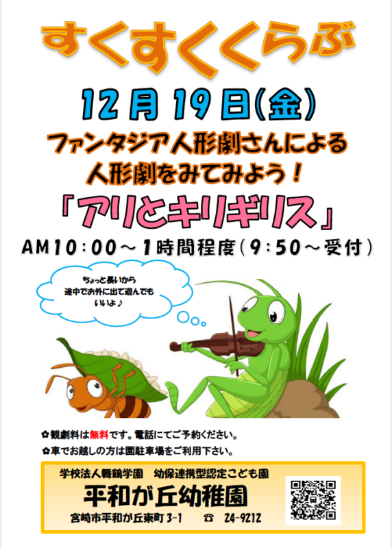 本日のすくすくくらぶは「給食を食べてみよう」でした。 まず最初に、【ラララだいこん】で親子でスキンシップをとった後、【あくしゅでこんにちは】で自己紹介を交えながらふれあい遊びを楽しみましたよ👩👦🎵 緊張もほぐれて、お喋 […]