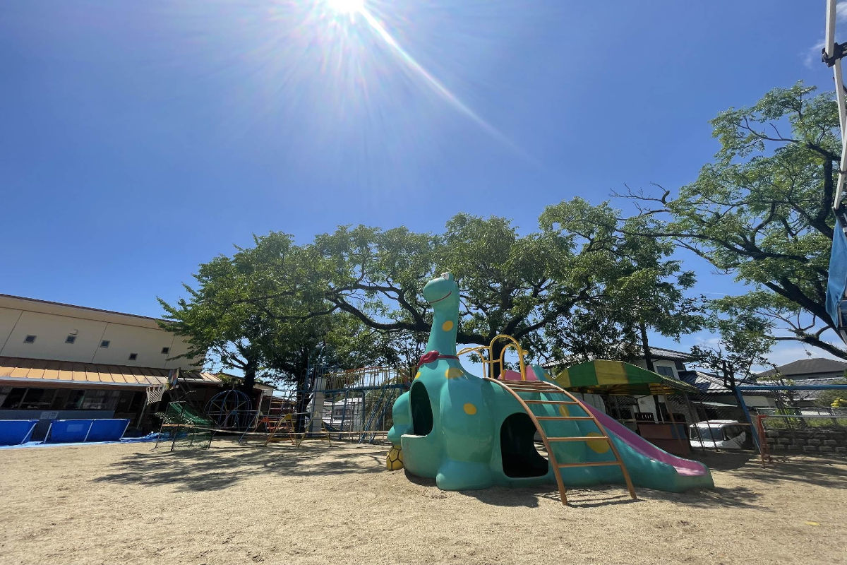 当幼稚園は、宮崎市平和が丘地域に立地しています。園庭には樹齢ある木々が生息しており、子どもたちは春から秋にかけては裸足で過ごします。